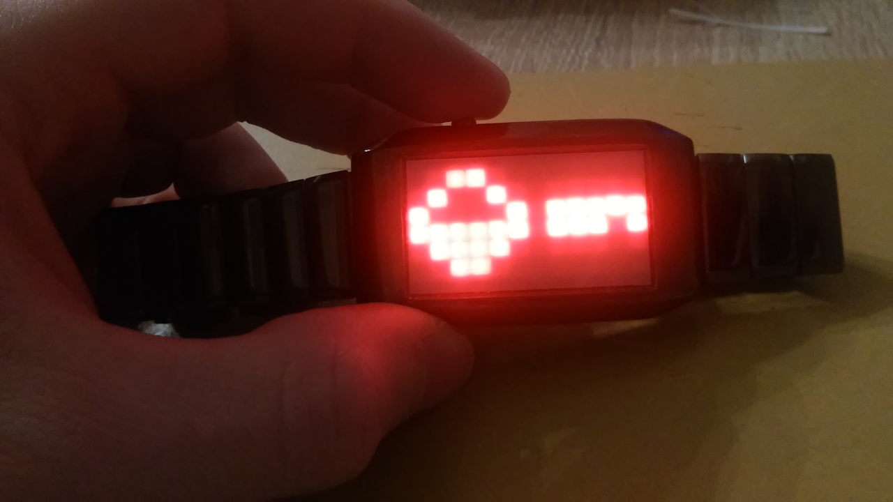 Itt van pár kép az órámról. Különleges menüpont lett benne a billentyűzár, mivel ha nem karon van hordva az óra, hanem mondjuk táskában, akkor könnyen benyomódhat a gombja. Kellett hozzá "rács" a LED-ek elé, ezt a 3D nyomtatós topicban egy kedves srác elkészítette. Nélküle csak világító pöttyök látszanak. A rácsok között kb. 0.5mm vastag az elválasztás, és szinte alig látszik.