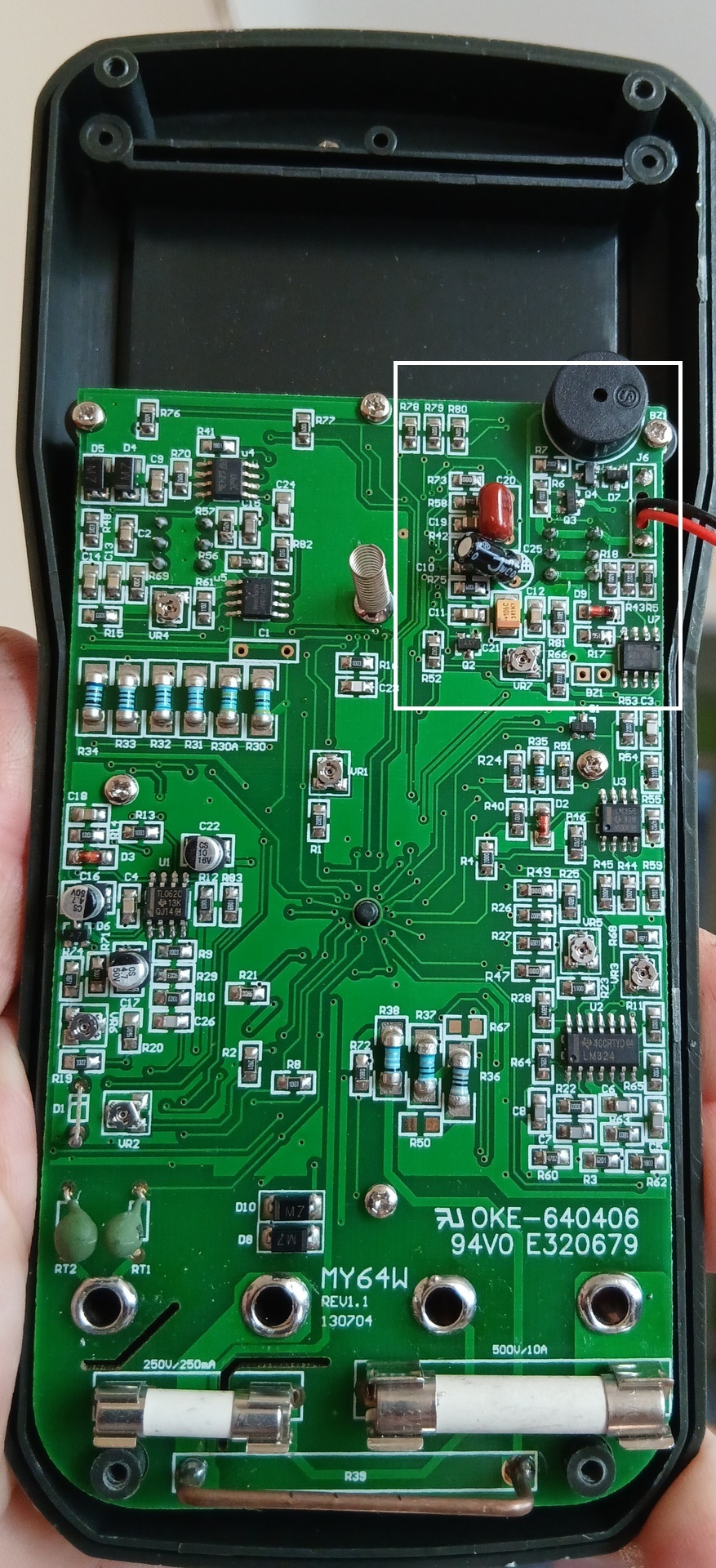 Tudsz mérni áramot ? Mennyit vesz fel a műszer ha "bekapcsolod"? Esetleg melegszik-e valamelyik alkatrész? A jelölt területről készítenél "éles" képet mindkét oldalról. Megpróbálom megfejteni a bekapcsoló rész kapcsolását.