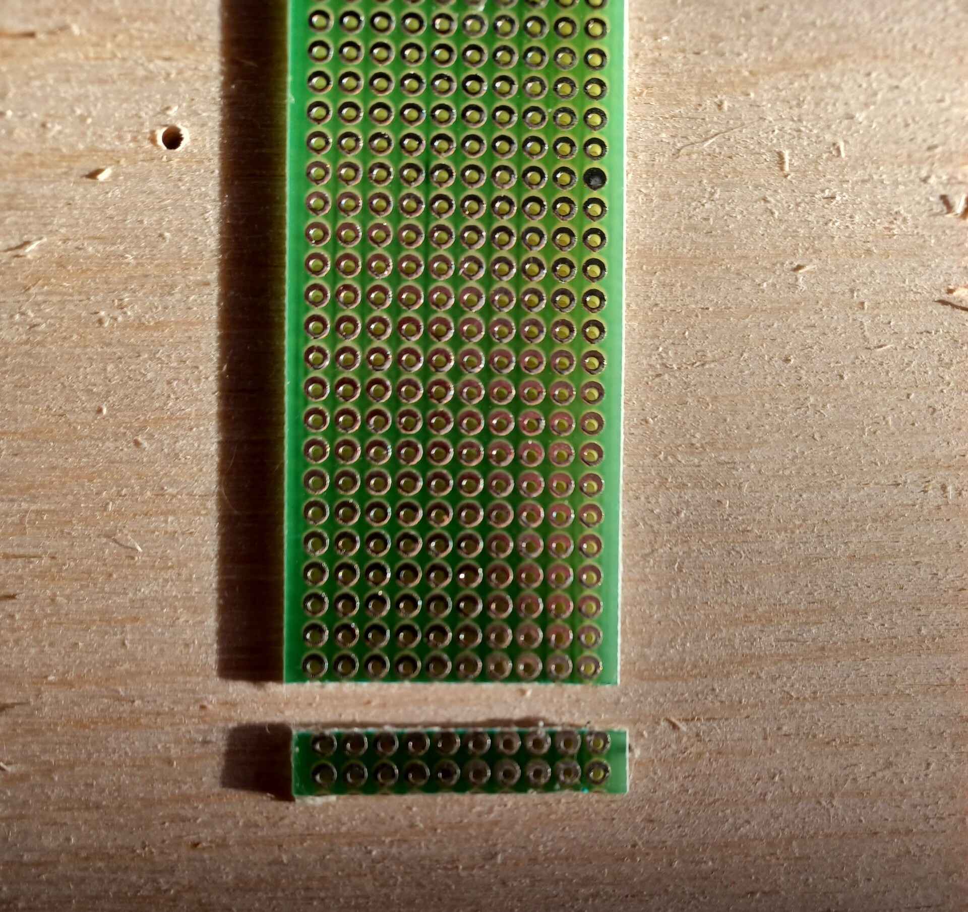 Mivel emlékeztem arra, hogy a HE Store féle univerzális FR4 próbapanel mennyire durva anyag (~ 1 fúrás, 1 HSS fúró, fűrészlappal is hasonló), csináltam egy próbavágást a karos lemezollóval. Az viszi erőlködés nélkül, nem gyűr, repeszt és sorja sincsen.