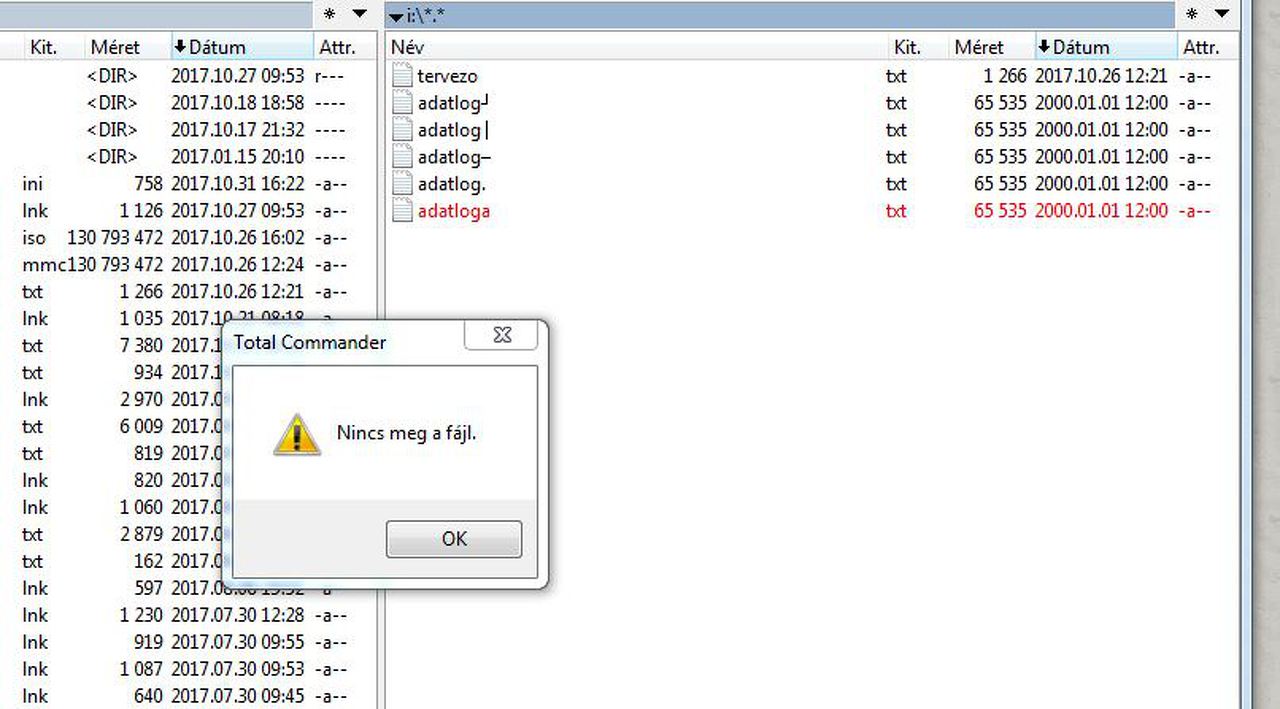 Valami normalis filekezelo nincs a kozeledben? VC,NC,Far? Azok talan kevesebb dolgot ellenoriznek es akkor kiderulhet, hogy mire haklis a tied.
