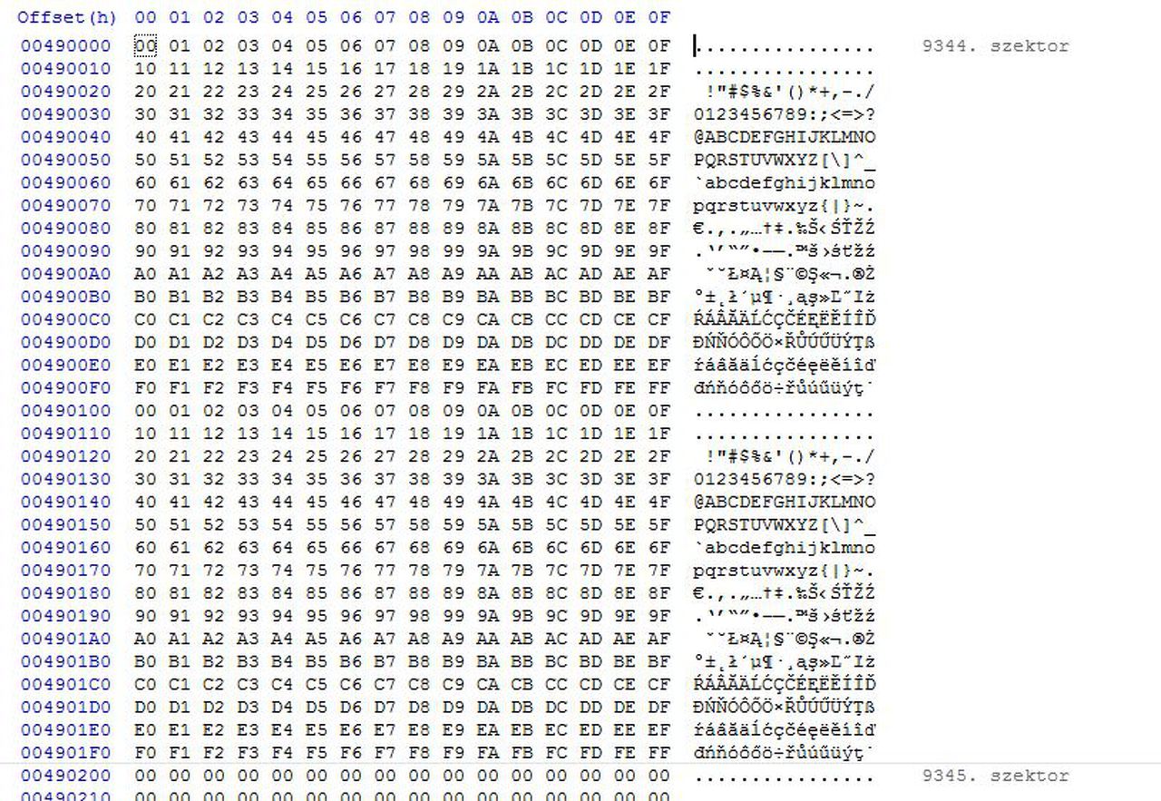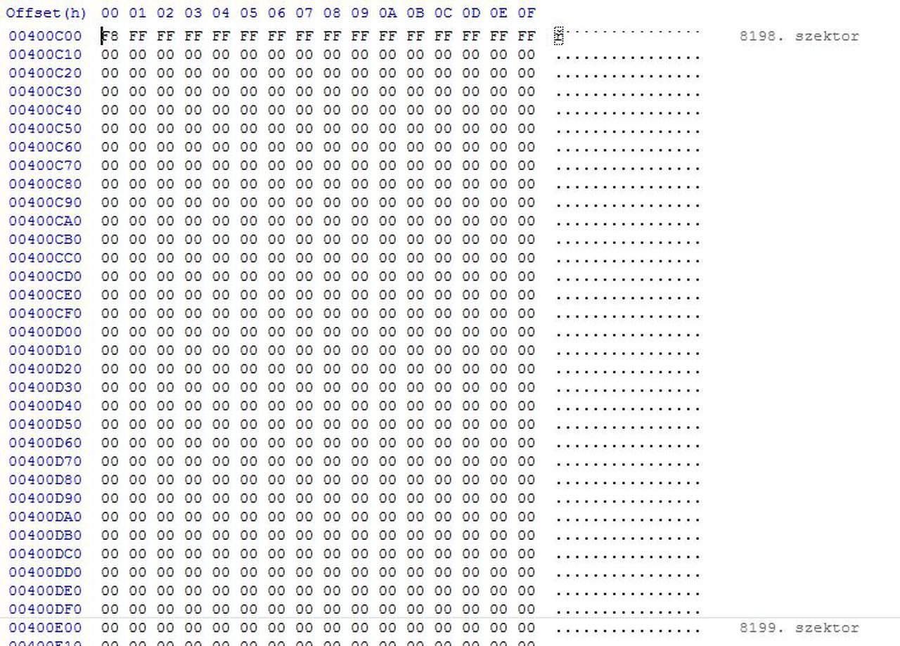 Ekkor megkapjuk a fájl kezdő szektorának címét ami ez esetben a 9344-es szektorra mutat.