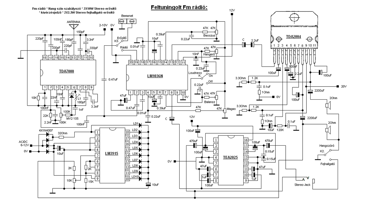 Két azonos értékű elektrolit kondit szembefordítva akkor szokás kényszerből összekapcsolni, ha már végképp nincs más megoldás. Az elkók helyes működéséhez előfeszítő egyenfeszültségre van szükség. Létezhetnek olyan esetek, amikor nincs egyenfeszültség, csak váltóáram folyik a kondikon. Ez az eset hangváltók esetén, amikor már másfajta kondiból nem áll rendelkezésre megfelelő kapacitású, és akkor így helyettesítik az unipoláris elektrolit kondit. Ezesetben ilyenről szó sincs, tehát teljesen felesleges a szembe fordított elkó használata, ráadásul 2,2 µF fólia kondi létezik, és nagyságrenddel jobbak a paraméterei. Egyébként is igen érdekes az egész projekt. Sztereóról szó sincs, nincs az áramkörben sztereo dekóder, és hangfrekvenciás bemenetből is csak egy van (kivezérlés jelző is csak egy). Hiába a bonyolult kapcsolás, attól még nem lesz sztereo. A TDA7000 - ből sem jön ki olyan, akkora sávszélességű jel, hogy dekódert lehessen utánna kötni. Én biztos egy egyszerűbb kapcsolást építenék meg, asatlapokból összeollózva. A hozzászólás módosítva: Okt 16, 2015