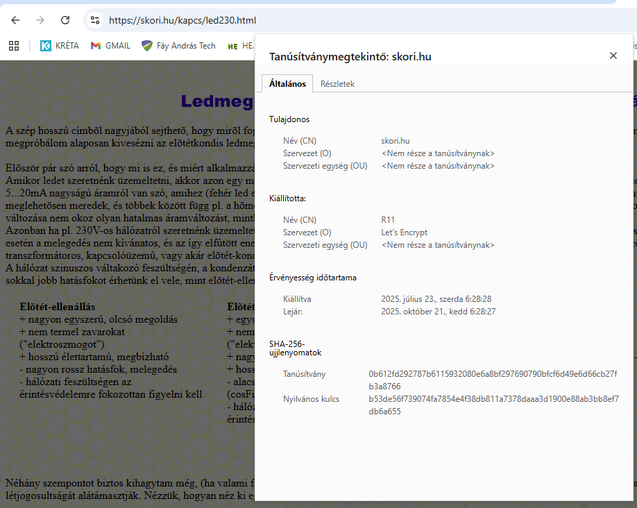 Kíváncsiságból megnéztem még néhány oldalt.skori.hu értékelése: A- Link Az otthoni NAS-om értékelése: B Link www.hobbielektronika.hu értékelése: B Link prohardver.hu értékelése: A Link facebook.com értékelése: B Link elektrotanya.com értékelése: B Link gmail.com értékelése: B Link Ezek után azt hiszem, hogy nincs okom komolyabban aggódni emiatt.