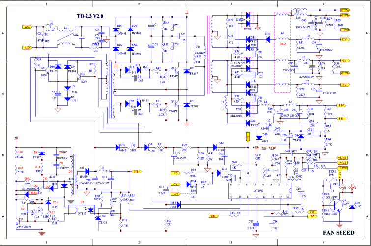 Szia! Azért írtam, hogy nem szokványos ez a táp, mert ha ránézel a kimenetekre akkor ott nem találni +3.3V és +5V sem. A kék szálat (-12V) és a fehéret (-5V) azt már kiforrasztottam, hogy nem kell. A (PG) narancs szín azt nem tudom, hogy mi volna. Ha felismerné valaki erről a belsőről, hogy melyik kapcsolás ismerhető fel benne az segítene abban, hogy melyik kondenzátorokat kell cserélni és mely alkatrészek nem kellenek. A 7905 sem kell szerintem legalább is ilyen kimenet nem kell ha szabályozhatóval próbálkoznék. A BYW51 duál az biztosan szükséges. A diódák többsége 1N4148 de a plasztikok azok kiforrasztás után ismerhetők fel, mert mind lefelé van fordítva és a zenerek sincsenek külön jelölve, hogy melyik volna az. Lehet, hogy keresek egy felismerhető felépítésűt és majd azzal jövök vissza kérdezősködni ha elakadok.