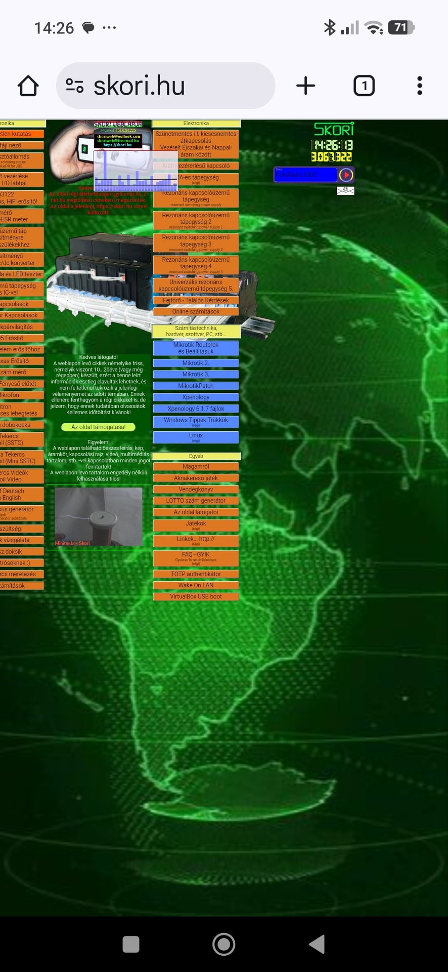 Amúgy pl. az én telefonomon viszonylag elfogadható, ill. használható, de ez inkább a telefon, vagy a böngésző érdeme ![]() A weblapon levő óra pl. szinte a lap kezdete óta megvan, még akkor készítettem amikor a javascript-tel ismerkedtem, ma már lehet, hogy ügyesebben is meg tudnám oldani, de szándékosan hagytam meg ebben a formában. A vendégköny esete szintén hasonló, az első php programozási próbálkozásaim egyike. Manapság egy chatgpt 1 másodperc alatt nagyobb tudású vendégkönyvet gyártana, csak akkor az már nem az én munkám eredménye lenne.