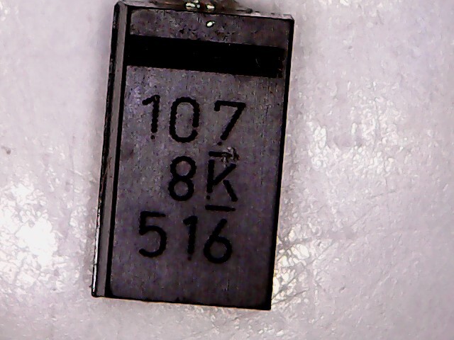 Tantál kondinak néz ki: A "107" az 100.000.000 pF = 100 uF. A "8" = max. 8V. A "K" = 10%-os tűrés.
