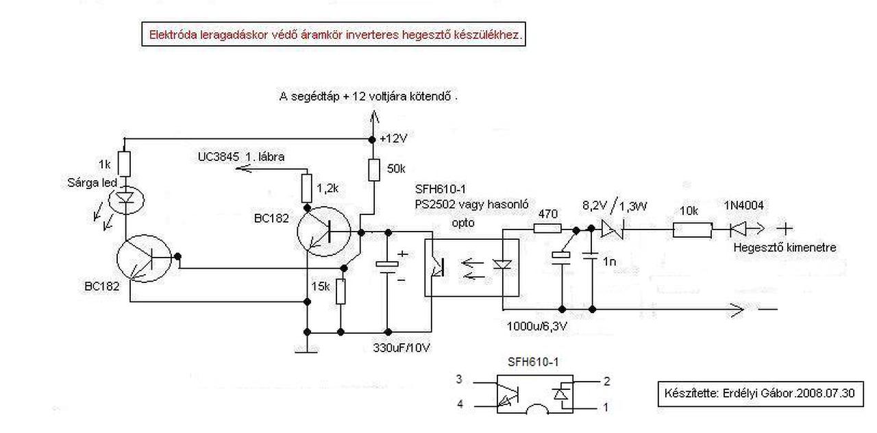 Egy nagyon egyszerű megoldást (danyk rajza) is csatoltam amiben az áram mellett van feszültségszabályozás is, ez átültethető apró módosítással az UCC-hez is. Mindazonáltal én még mindig azt mondom, hogy az inverternél nem létfontosságú a feszültségszabályozás ha Co-ként akarod használni, mert akár az áramot, akár a feszt szabályozza az IC, ugyanazt csinálja, a kitöltést szabályozza, mert mást nem tud. Építesz egy combos hidat, kétutas egyenirányítással mondjuk 40V-os szekunderrel. Teszel rá egy graetz-et a 2 végére pluszban, ahogy azt már itt 1-2 kolléga megcsinálta, és kb. kész is van a pálca-Co kombó. Az enyém is készülőben van, de olyan mint a luca széke, fogalmam sincs mikorra lesz kész. Tehát. Van egy 40V-os erősáramú szekundered, amivel hegesztesz, ehhez van egy graetz-ed amin 80V lesz csökkentett árammal, az áramot a soros kondik korlátozzák (lásd bistván rajza), ez a 80V lesz a gyújtófesz. Nagyon könnyű lesz az ívfogás, a 40V-os nagyáramú rész pedig bőven elég a 20-25V körüli ívfeszültséghez, ennek az áramát ugye szabályozza az IC. Leveszed a graetz-es becsatolást, plusz elindítod a tolómotort, és a 40V-os szekunder onnantól a Co huzalt fogja olvasztani. A feszültség kb. annyira fog lecsökkenni ami nagyjából optimális lesz a Co huzalhoz, nyilván a szükséges áramot és az előtolást hozzá kell állítani. Ugye, hiába tennél bele feszültségszabályozást és próbálná az IC azt tartani (növelni a kitöltést), mert ahogy elindul a huzal megnő az áram, eléri a beállított értéket, és az IC máris veszi vissza a kitöltést, a két szabályozókör egymás ellen kellene hogy dolgozzon (esik a fesz ezért növelni kéne, de nő az áram ezért csökkenteni kéne a kitöltést). Szóval én úgy gondolom hogy jónak kell lennie ahogy leírtam, azaz fesszabályozás nélkül is, de majd ha egyszer elkészül és kipróbálom akkor kiderül.