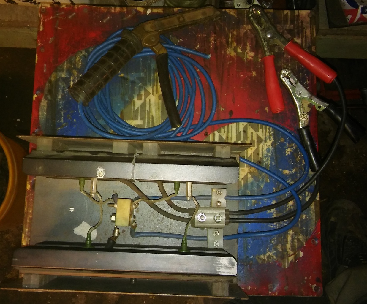 Segítséget szeretnék kérni, néhány napja találtam lentebb látható képen szereplő szerkezetet nagynéném megboldogult férje műhelyében! Nem vagyok teljesen laikus a témához, mármint van nekem is co-m meg ívheggesztőm is de ez nem tudom minek készülhetett, talán valamilyen akkumulátoros heggesztőnek? Látszik rajta hogy házi gyártmány, 4 vezetéke van, az egyiken elektródafogó, párja üres, gondolom a test csipesz kerülhetne rá, illetve a másik kettőn egy-egy csipesz van, képeken jól látható. Szóval várnám az ötleteket, minek is készülhetett ez a gépezet?