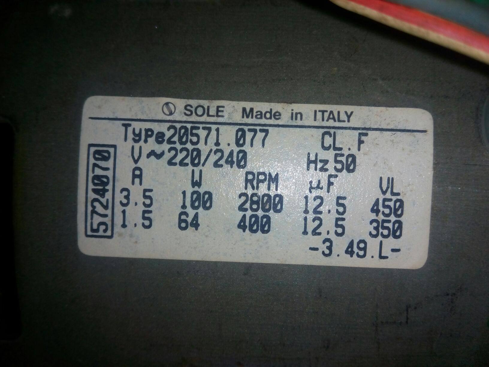 Nemrég került hozzám egy SOLE mosógép motor . Típusa: 20571.256