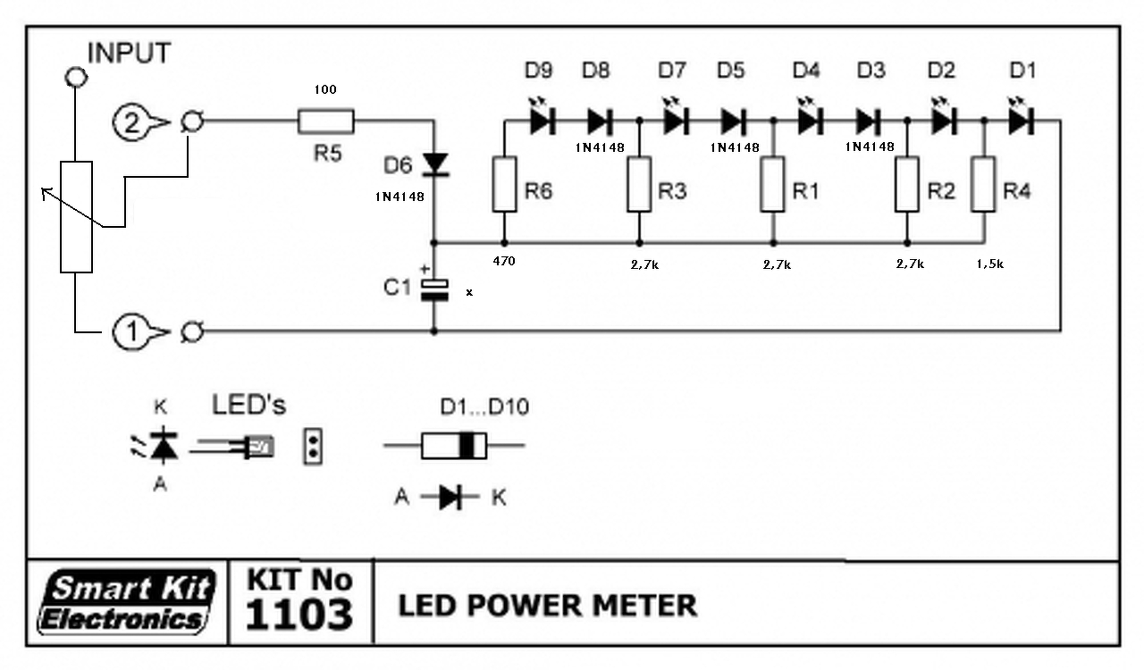 A bemeneti potméterrel tudod a jelszintet beállítani.A kondenzátorhoz azért tettem x jelölést , mert az függ hogy milyen kijelzést szeretnél szeretnél látni gyorsabbat , lassabbat , tehát dinamikusabbat , vagy esetleg épp fordítva .Ezt majd magadnak próbálgatod. Nem tudom mennyire jó ezt hangfalhoz megépíteni ugyanis számít az, hogy milyen szinten hallgatod éppen , és ha közel csúcshoz , akkor már folyamatos állandó kijelzést fogsz kapni. Mivel egy végfok kimenetén nem állandó a teljesítmény hanem változó , így a kijelző beállítása is kérdéses , hogy mely intervallumhoz legyen állítva .