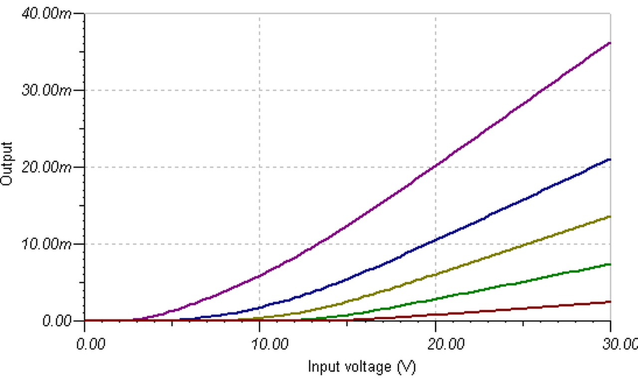 Hello! Ezt a kapcsolást leginkább elfelejteni érdemes. Pld. az első Led-en átfolyik az összes árama. Vagy is az első világítani fog, mint a zseblámpa, a többi a sorban meg egyre gyengébben. De hogy lásd miről van szó, leszimuláltam hogyan alakul a Led-ek árama a bemenő feszültség függvényében..