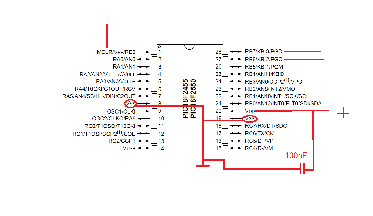 A PIC-en nincsen ellenállás, így is cseréljem ki a 10k-t? Némelyik picnek 2 földje van össze kössem őket? (PIC18f2550)Az alábbi képen jól kötöttem be? Bocs a béna rajzért. :hide: