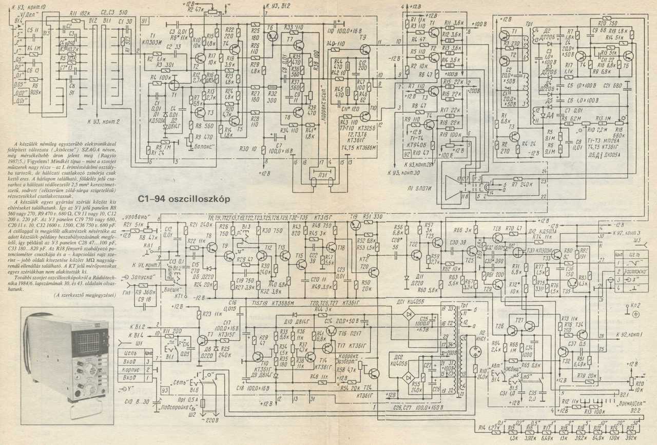 Én is vettem egy c1-94 oszcilloszkópot. első néhány alkalommal jól működött, aztán később már úgy indult, hogy a kép alsó szélét csak a képernyő felső részére tudtam állítani. Ekkor sikerült elállítani az y3 panelon két potit: R34, R37 (Az R34 a T10 bázisát állítja, R37 a T14 bázisát állítja.)