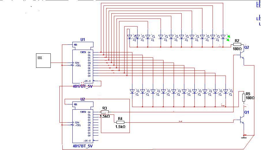 Szerintem a futófény részére talán ez.(nagyjából) Az alsó ic további kimeneteit használva talán 100 ig bővíthető,de csak egy irányba fut,és csak egy led egyszerre.