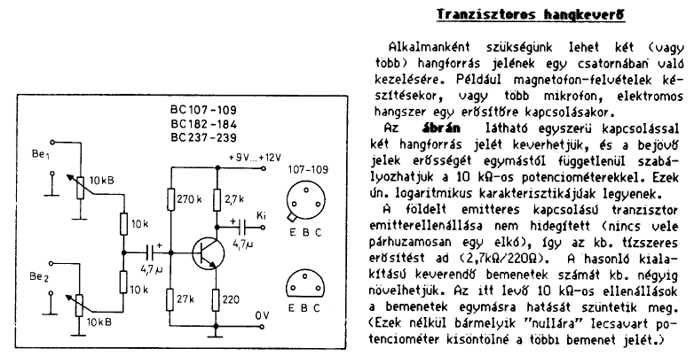 ahogy frrrrr is írta, mikrofont mindig csatornánként kell erősíteni, mert a passzív (potis) keverő a pár mV-os jelet számottevően gyengíti és az egymásra hatás is erősebb. az Elektorból való kapcsolás szimmetrikus bemenetű, tehát dinamikus, 200ohm körüli mikrofonokhoz való (olyanokhoz, amikben nincs beépített illesztőtrafó). Az alkalmazott IC stúdiócélra fejlesztett spéci kiszajú darab, de ma már elérhető áron hozzáférhető. A manapság széles körben alkalmazott "kapszula" mikrofonok a profi kondenzátor- mikrofonok kistestvérei, de nem igényelnek néhány voltnál nagyobb tápot, amit az erősítő bemenetére egy ellenállással vezetnek. (a stúdiókban használt típusok többnyire fantomtápot használnak, 50...100V körüli feszültséggel)