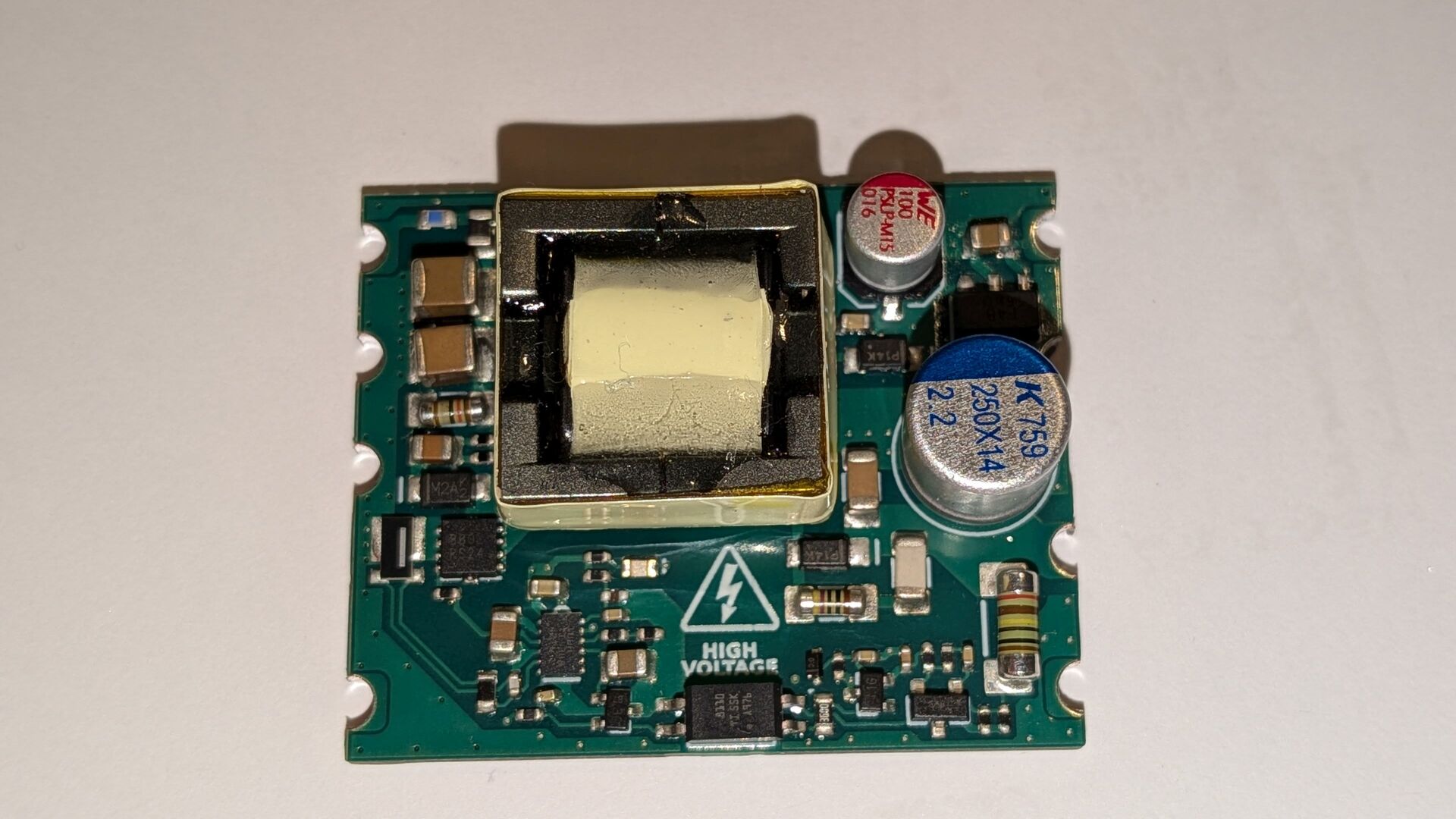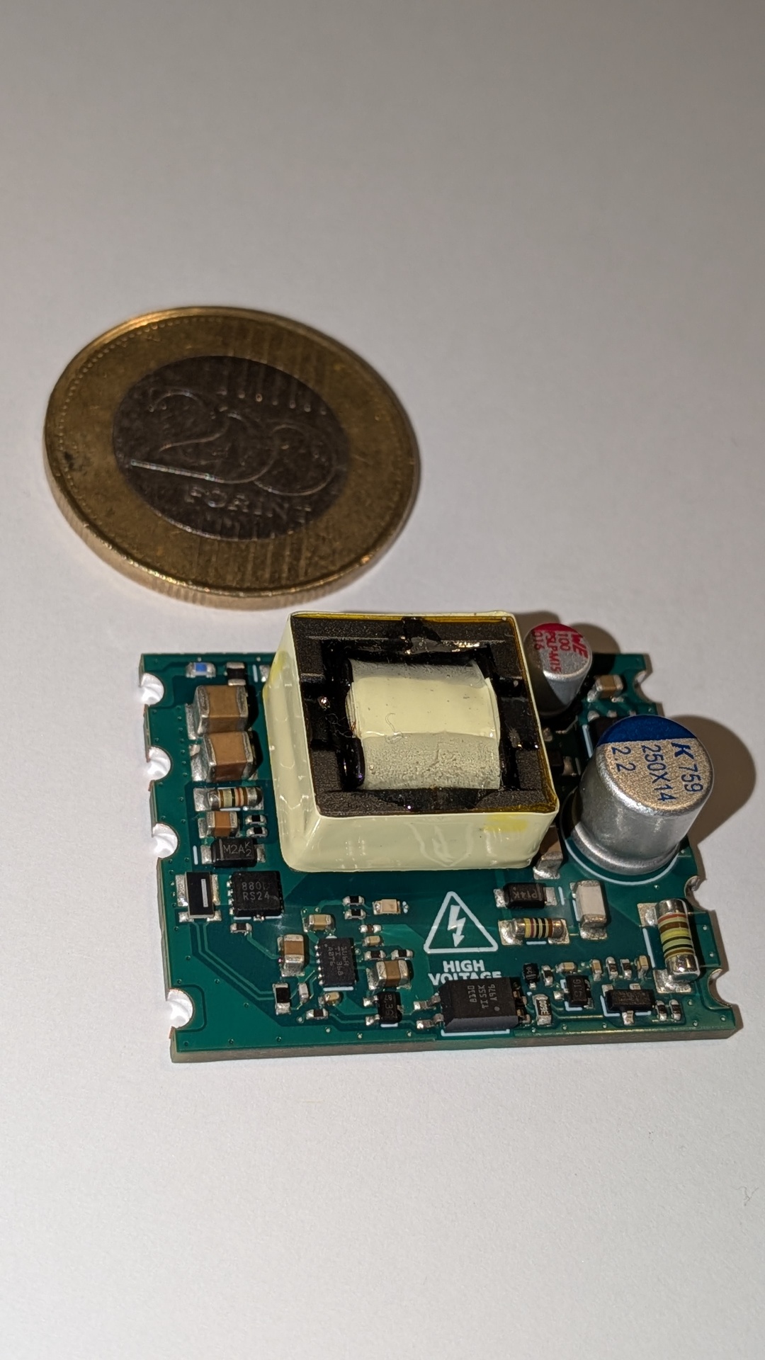 A képeiden látszó osztott cséve ígéretes lehet a hálózati leválasztás szempontjából, de a csatolás irányából vizsgálva már kevésbé szerencsés. Ezen kívül a megbízható működést aláássa a vezetékszigetelések hiánya, és látszólag a szigetelő anyag választása sem ideális.