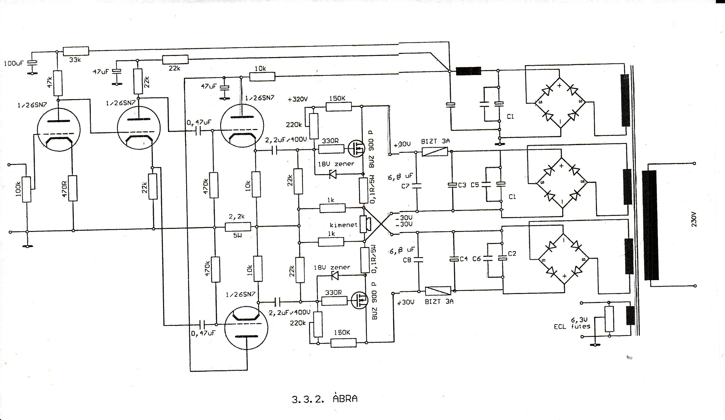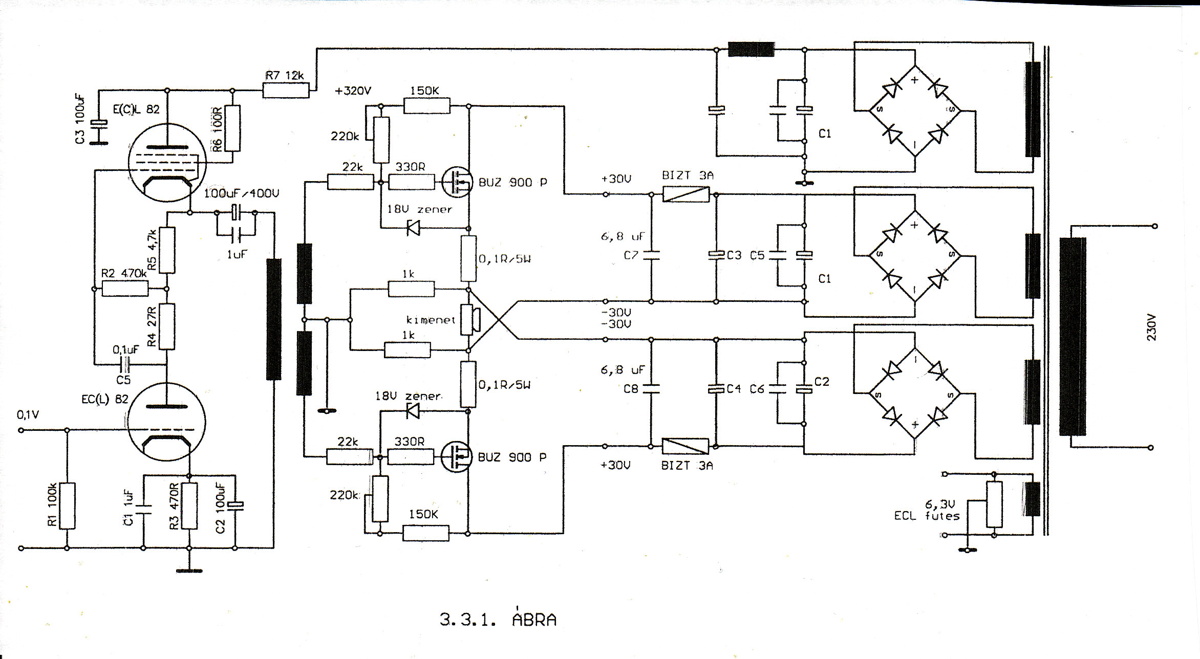 Hello! Van itt néhány igen jó hangú erősítő, aminél jobbat (főleg a 3.3.1 és 3.3.2) boltban félmillió alatt nem kapsz. Ezek hibrid erősítők, de persze a végét meghajthatod tranyókkal is. Ezek A oszályúak. A 3.1.1 20-40W -ot tud. A másik kettő nemtudom, de az is A-s és az szebben szól. Azokat is meg lehet csinálni tranyóval a fet helyett. Az utóbbi kettőnek (ami igazából 1, ill. annak 2 verziója) a szépsége, hogy végfoknál npn eszközök vannak (azonos polaritású!) és azonos elektródájukon van a kimenetük, előny még a földfüggetlen szimmetrikus kimenet, és persze az A osztály! A csöves feszültségerősítés csak hab a tortán. Ez tehát minden feltételnek megfelel ami egy igazán jó hangú erősítőnél ajánlott. A mosfeteknél elhagyható a védő zener dióda, így szebben szól (legalábbis ezt mondja aki már megépítette).