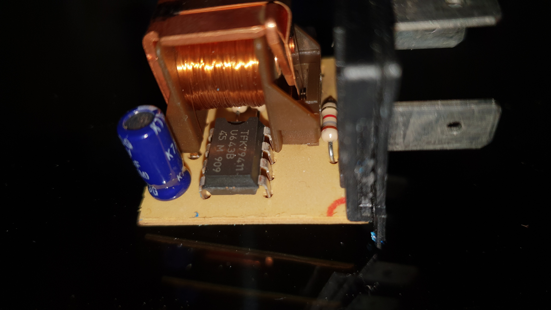 Csak egy tipp, egy próbát megér: a második képeden a söntöt( kis fémlemez a panel szélén) vedd ki és tegyél a helyére egy diódát! A dióda csíkkal jelölt vége menjen a 7. láb ( a relé) felé. Ha van schottky, akkor azt, ha nincs próbálj sima diódát. Akkora legyen, hogy elbírja a ledek áramát, mert ezen folyik keresztül. Nem próbáltam, csak ötlet! ( ha dióda van benne, izzóval ne próbáld!)