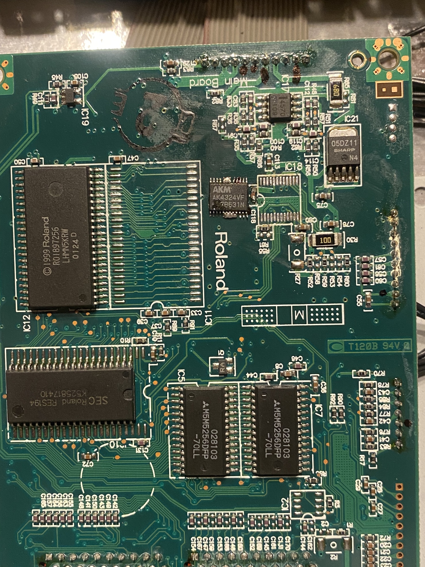 Roland HP-137R nem akar megszólalniSziasztok! Egy elektromos zongora problémájával fordulok hozzátok! Az történt vele, hogy egy komolyabb zenész elkezdett játszani egy gyors ritmusos zenét, és egyik pillanatról a másikra elment a hangja. Én szétszedtem, és átméregettem benne mindent amit tudtam, zárlat sehol minden tápfesz megvan, minden ic megkapja az áramot. Az alapján találtam egy ic-t(AK4324VF) amit már egyszer cseréltek, most is melegedett de nem volt vészes, rendeltem is egy ilyet hátha ez lenne a baja! A legtöbb ic-t az alaplapon, sajnos nem ismeri a Google. Service manual szintén nem találok sehol hozzá!Valaki javított már hasonlót? Vannak e tapasztalatok ezeknek a régi csodáknak az újraélesztésben? Válaszokat előre is köszönöm! A hozzászólás módosítva: Jan 19, 2025