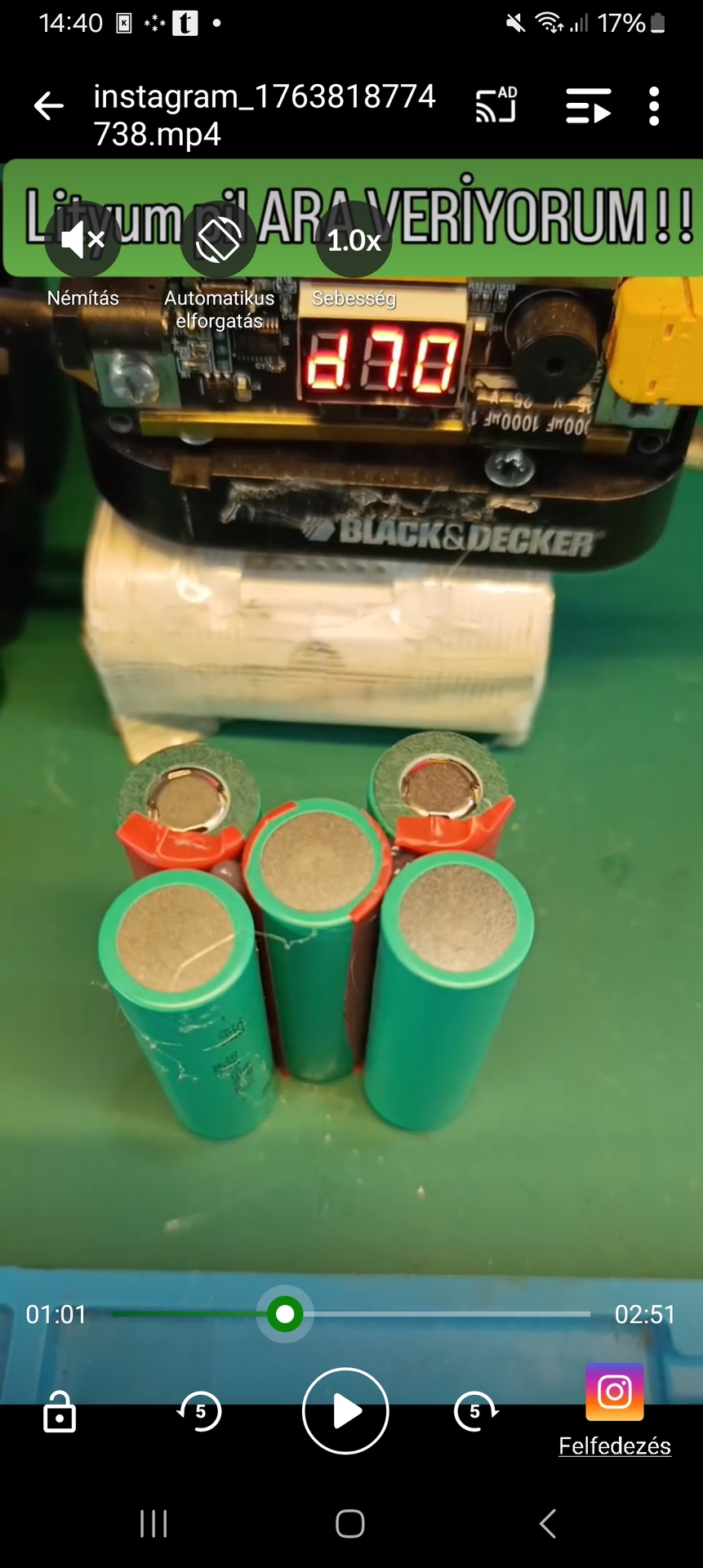 Nem volt csak félig az akku, felraktam töltőre, villogott a második kék LED. Addig nem akartam kipróbálni, amíg nincs feltöltve. 10perc múlva ránéztem, sötét...hmmm...kihúz, bedug, semmi, csak kis idő múlva villan az első 2 kék LED. Másik töltő, ugyanaz. Szétszedtem, az USBc aljzatnál van egy supresszor dióda (KG), ami púposnak tűnt. Megmértem, zárlatos. De, hogy mitől egy szabvány fali USB töltőnél, ami A->C-s kábellel tölt és nem is tud csak 5V-ot? Találtam egy HDD-n egy KE-t, 0,2V-al kisebb feszültségű, de szintén 5V-os ágon volt. Átraktam, mégiscsak legyen ott, ha már kitalálták. Most végre lehet tölteni újra. Amúgy már nem bírtam tovább, kipróbáltam a hegesztést. Nem vagyok tőleg elájulva. Eddig még sosem csináltam ilyet egyébként. Szép tiszta 18650-es rossz cellákon gyakoroltam a hozzá adott 0,1mm-es lemezzel. Csak a 11-es max állásban lett valamennyire használható a végeredmény, de durván nyomva is leszedhető 4 ponttal. Ha ráfér több, akkor jobbnak tűnik. Meglepett, hogy durván melegszik a hegesztéskor a fej. Ja, ez a része gagyibban van préselve, mint a promóciós képeken, de amúgy meggyőzőnek látszik. Most töltőn van, ha teljesen fel lesz töltve megnézem megint. Gondolom ezeknél az akkusoknál sokat számít, hogy félig vagy telejesen töltött az akku. Csak a 11 fokozat van, ismeretlen kitöltéssel és időtartammal, az erősség és az idő külön nem állítható, az indítás csak automatán megy a csúcsok érintése után elég rövid időn belül.