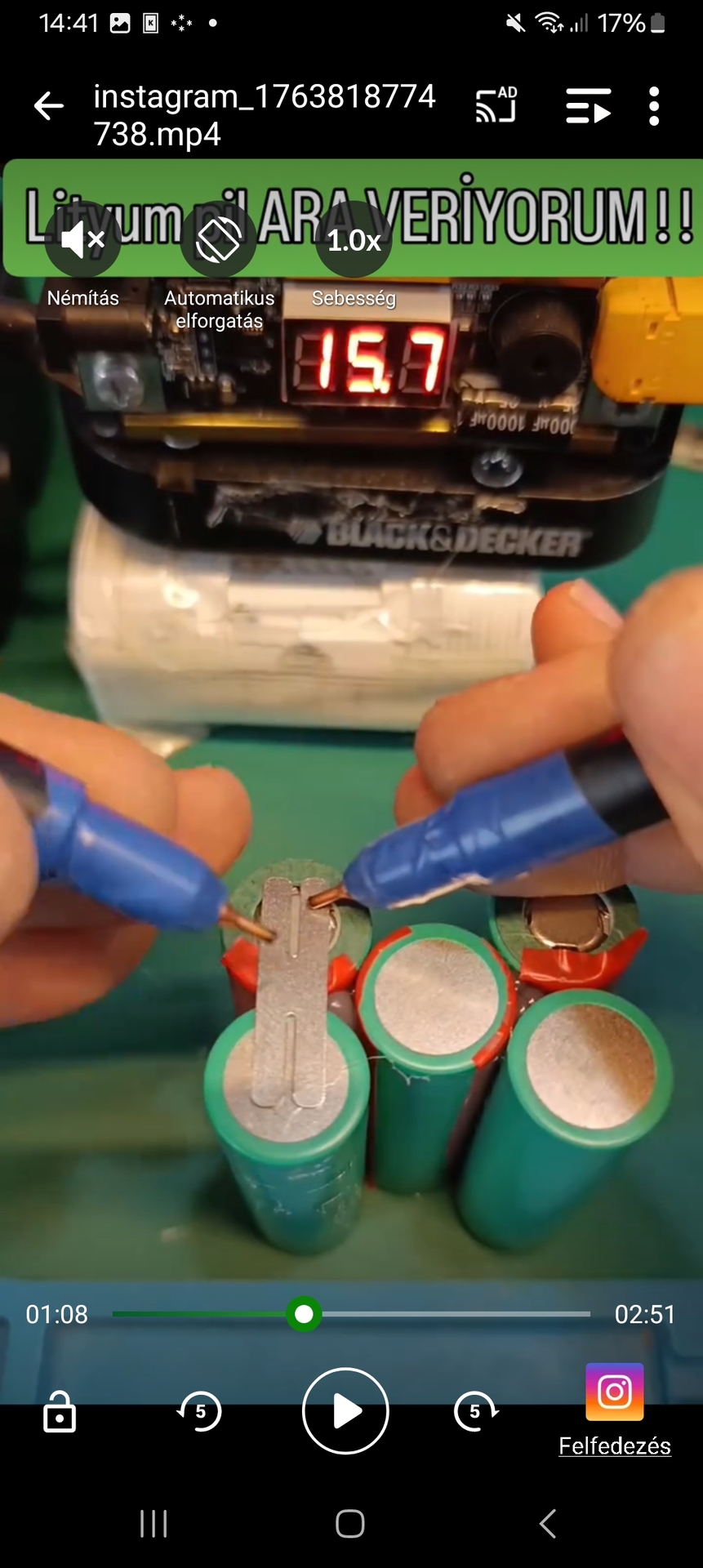 ![]() Ja, van fent egy videó is, ahol 2 kéz valóban akkucellára ponthegeszti a lemezt, de egy harmadik kéz nyomkodja a pedált...