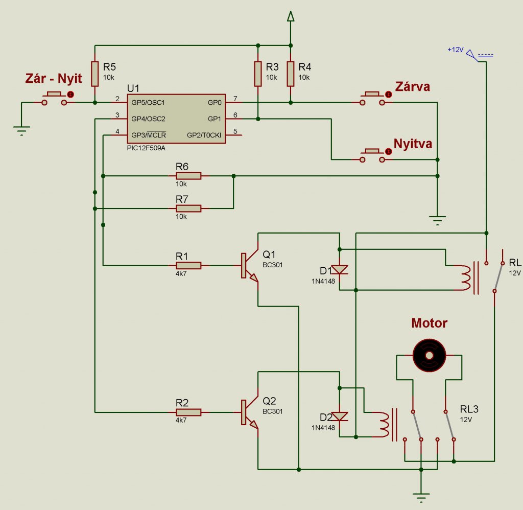 Feltételeztem, hogy 12V-os a motor, igy minden tápfeszt a PC tápról kaphat az áramkör.