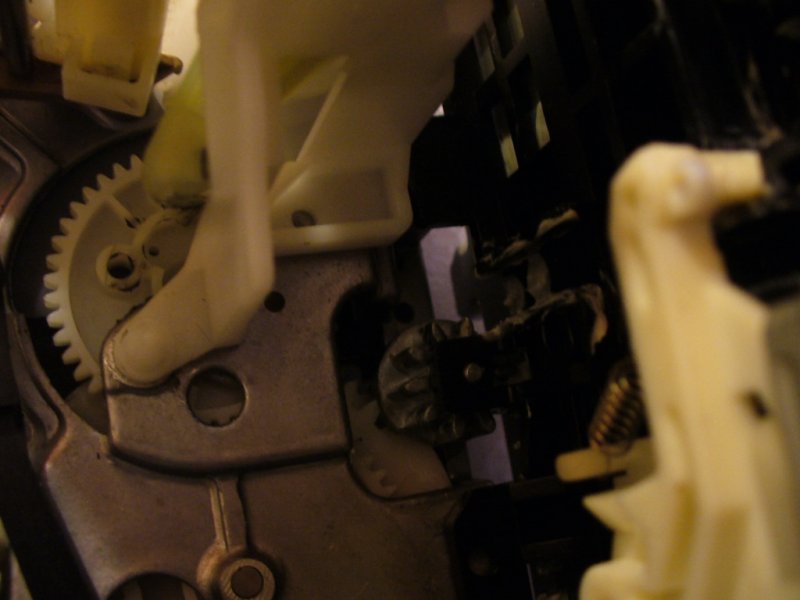 Nem, ebben van a feltételezett repedt alkatrész, nézd meg a képet amit előzőleg betettem. Közvetlenül a motor tengelyén található ez megy bele az általad bemutatott csigába. Repedés miatt a motoron megcsúszik és nincs elég ereje a befűzést végig csinálni.