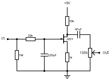A mélyebb tartomány akár attól is eltűnhet, ha nagyon beterheli az utána következő fokozat. Egy pedál, vagy erősítő. Szerintem egy illesztő alapkapcsolást kéne kipróbálni. 22nF már kb elég kéne legyen, nemhogy 47nF még mindig kevés... A másik amire gondolok, az az elem. Amit a hangszedő "kiad" magából, már az a jel is túl nagy, lehet, hogy az elem épp merülőfélben van. Bár ezt kétlem, ki lehet próbálni másik elemmel... Ami a túlvezérlést illeti: A kombómba olyan megoldást használtam a gate túlvezérlése ellen, amit a japánok alkalmaztak az erősítőikben. Tiszta csatornánál nagyon kellett. Erősítés után is, akármennyire csapok oda a húrok közé, nem "rottyan" be. A gate ellenálló "alsó" lábát egy nagyobb potenciálra kell tenni, mint 0V. Ugyanígy egy osztót alkotsz, csak a tápot osztod le. 1/4-3/4 osztás kb pont elég. Tehát a 9V-ot leosztod 2 ellenállóval, hogy alul legyen a kisebbik ellenálló. Az osztó "közepére" kell tenned a gate ellenállásod. Zoli
