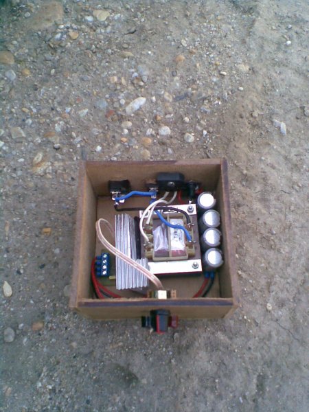 Egyébként mellékeltem egy képet. Ilyen kis dobozt csináltam neki, kb. 10cm széles az egész. Talán látható, hogy a poti nem a panelen helyezkedik el, hanem az előlapon, túlságosan nagy hűtést nem igényel az IC. Kisebb tesztáramkörök élesztésére használom. Nem féltem ezeket az IC-ket, van belőle bőven, még TO3 tokos is.