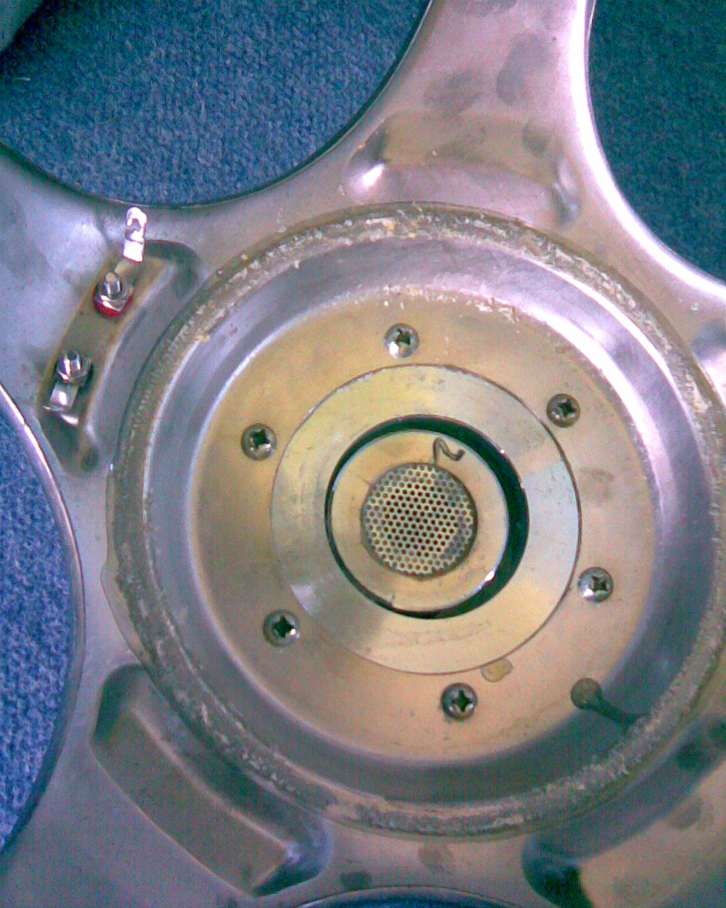 Hú elég macerás ... be kell hajtani egy hosszú csavart az eggyik csavarhelybe ami szépen lefeszíti neked a mágnest mert máskép nem lehet levenni majd lecsiszolod a régi ragasztót és bekened "vasragasztóval" és úgy megpróbálod visszailleszteni hogy középen maradjon a mágnes.Én pl sasszegekkel pakoltam körbe a ragadás ideéig...