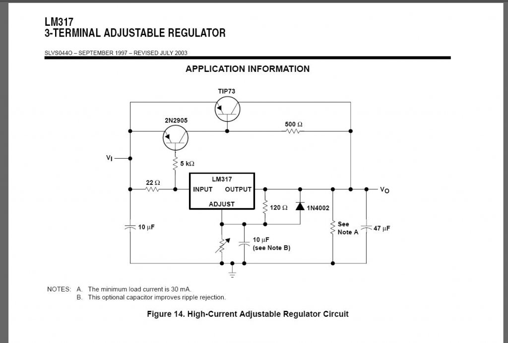 „ Amúgy vagy LM338K -t használsz, az tud 5A-t, abból már csak kettő kell, vagy a 317-ből egy marékkal, hogy elvigyen 8A-t. Harmadik lehetőség, hogy teljesítmény tranzisztorral rásegítesz. Az adatlapon van rajz, ha több IC-t kötnél össze, vagy ha tranyósat akarsz. Az LM317 max 40 V-ot szeret a ki- és a bemenet között ! A 47 V sok neki, ha rövidrezárod, akár csak véletlen is, megpurcan.” Kiegészítve két rajzzal: