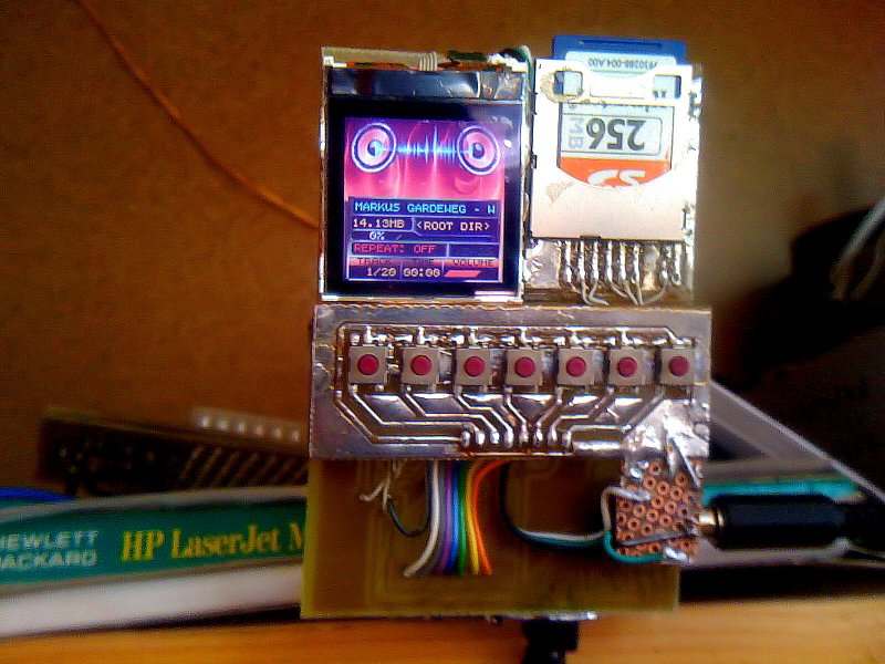 Köszönöm! Körülbelül 15-16 nap dolgoztam vele napi 10 órában, szóval volt vele munka. Újraírtam a FAT32 fájlrendszer kezelését (egyszerűbbre, hatékonyabbra), mikor ez megvolt, jött a grafika és a kijelző kezelése. Ezzel is bajlódtam sokat, de megtanultam a bitkép specifikációját és már azt is szépen kezeli. Ezután jött a flash memória, valahogy át kellett tenni rá a grafikákat (ezzel nem volt sok gond, csupán az okozott fejtörést hogy megfelelően jöjjön ki a lépés SD kártyáról SPI Flash memóriára másolás alatt). Következő az MP3-as kodek, az adatlapjában benne van minden parancs, szóval azokat függvénybe kellett önteni, ez ilyen szöszölős volt. Ezt követően ezeket a dolgokat szép lassan összehangolni, mikor mennyi idő van a zeneszám lejátszása alatt, úgy kellet szervezni a műveleteket hogy ne legyen hatással a hangminőségre (pl. ne lassuljon "laggoljon"). Felhasználóbarát módon lehet cserélgetni a megjelenését úgy, hogy a tisztára formázott (vagy törléssel üressé tett) SD kártyára, a megadott sorrendben fel kell másolni a grafikus fájlokat, és az indító dallamot. A lejátszó "boot"-részénél (ahol megjelenik a saját logó) megvizsgálja a kátrya tartalmát, amennyiben megfelel a követelményeknek, pl. darabszám, fájltípus, akkor ráismer hogy frissítési fájlokról van szó, és automatikusan felülírja a Flash memória tartalmát az új adatokkal, és a következő boot-nál már az új színben és dallamban tündököl.