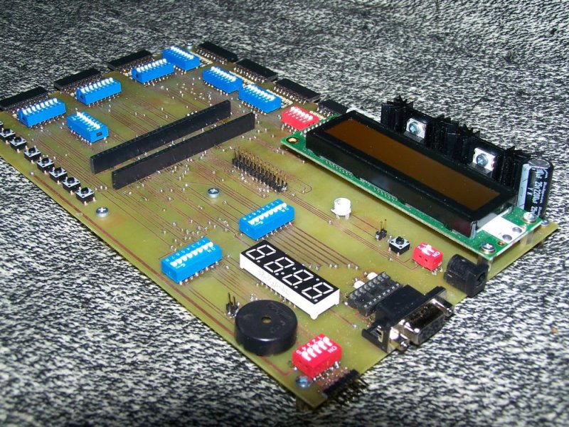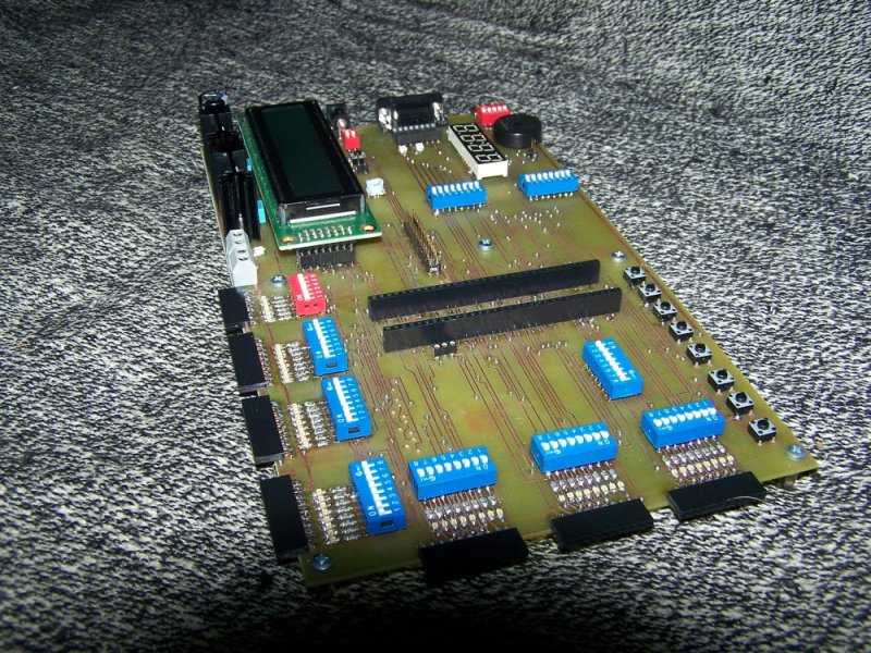 Végre kész lettem a fejlesztő panelemmel . Momentán egy 18F6622 re készült (TQFP64) ,ez kerül lidi jóvoltából a DIP64 es helyre egy adapterrel ,de más PIC eknek is lesz karos adaptere. Minden port ki van vezetve és debughoz ledek is vannak rajta .A több értelemszerű és minden ki/be kapcsolható. Csak anonim köszi a segítséget mindenkinek ! |