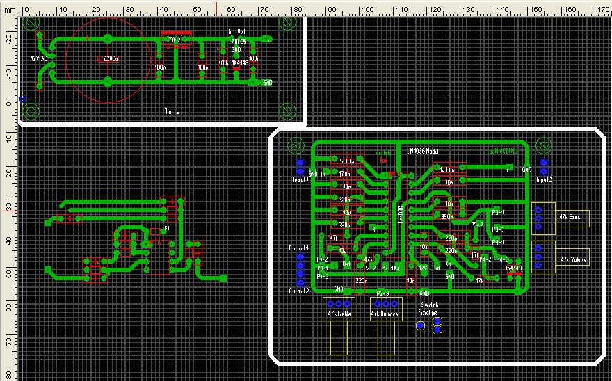 ![]() Ha arra gondolsz, hogy teljesen zöld alapon dolgozok(tehát megvan hagyva a fólia a panelen mindenhol...) az csak azért van mert a fekete sötétben bántja a szememet... A valóságban ott le lesz marva a fólia(terveim szerint) Ha nem ez az auto gnd, akkor nem tudom miről van szó épp ![]() A problémám leginkább az NE5532 elrendezésével van. Az igazság az, hogy az is megfordult a fejemben, hogy panel -a panelen megoldást alkalmazok Pin tűs csatolással. Így külön kicsi panelre mehetne az előerősítő rész, amit tűkkel csatolok (valahol ahol van hely) az LM1036 paneléhez. De a probléma a méretekkel van, hogy hogy építsem fel az előerősítő részt. Mert ugye itt nem mindegy mely sávok mennek egymás mellett(gondolom én). Annyi tapasztalatom van ezzel kapcsolatban, hogy egy hasonló hangszínszabályzós TDA IC panelt már csináltam, amin esztétikusan egymás mellett futottak a bemenetek és áthallásos lett a cucc, így egyben eldobós is... Na most ezt nagyon elkerülendő fordultam hozzátok