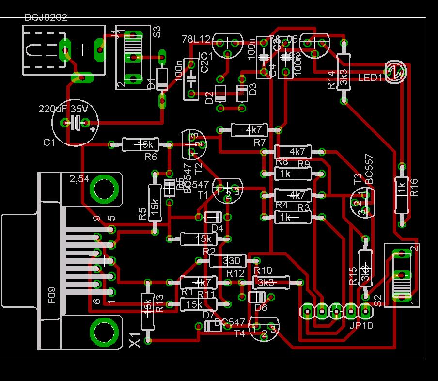 1. Ez egy JDM klón, ha jól látom, így pedig nem fog megbízhatóan működni. (Lásd korábbi hozzászólások.) 2. Ha Eagle-ben tervezel, és nem SMD (felületszerelt) alkatrészeket akarsz használni, hanem furatszereltet (hagyományos lábasokat), akkor ne a Top rétegre készítsd a vezetősávokat, hanem a Bottom-ra (Top=felső, azaz a beültetési oldal, Bottom=alsó, azaz forrasztási oldal.) Bár igazán nagy jelentőssége nincsen, de azért könnyebb a "tükrözés" megértése (például).