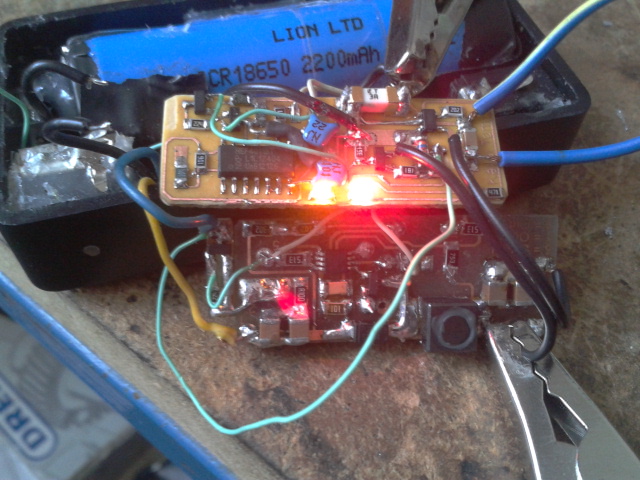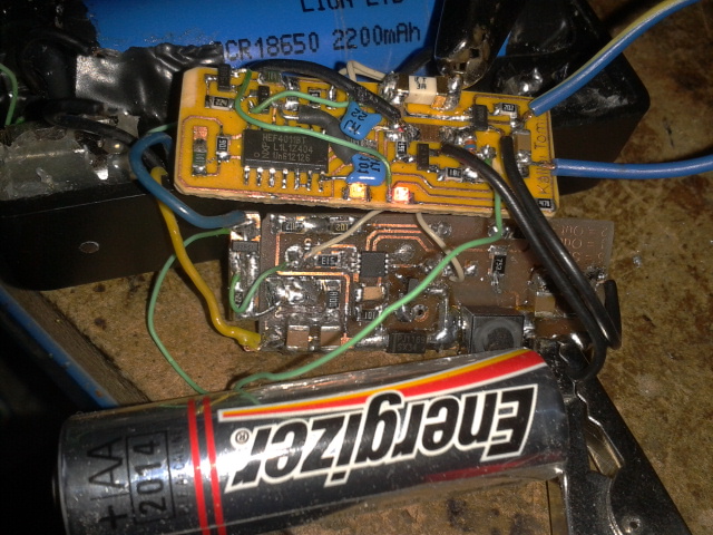 ... még azt észrevettem, hogy kb egy nap állás után le is merült eléggé a li-ion cella,(úgy, hogy rajta volt a 4 elektronikai egység: töltő, mélykisülés elleni védelem, konverter, és a fesz figyelő, a telefon töltése nélkül) de kiderült, hogy a zéneres feszfigyelőm miatt, ami fixen rajta volt az akkun. Ezért azt a "zseblámpa"-val fogom vezérelni, amikor a lámpa be van kapcsolva, akkor működik a fesz figyelő, így ha a lámpa világít, de a feszültség figyelő ledje nem, akkor még van enerdzsi az akkuban.
