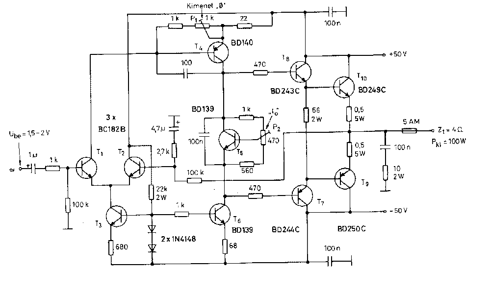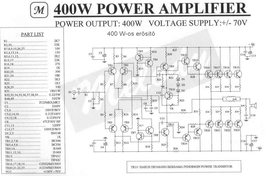 Amugy vicces tuningerősítőrajz mert ez így max +/-50-ről elmenne de ott is gázos egy áramkör lenne.Ugyanolyan zagyvaság mint a 200W-os quad. Akkor már inkább az urbán féle 300W-ost építsétek meg az legalább működik és még stabilnak is mondható talán, csak marha drága de ezt el kell fogadni.