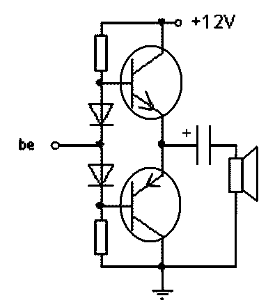 Így már tényleg nincs egyenfesz a kimeneten, ez már teljesen a normál komplementer végfok, csak lecsupaszítva a minimumra. De jól szól, és a tranyók nem igazán melegednek a kicsi áramfelvétel miatt. Most csak összegányoltam a szimpla tápos verziót, 1kohmos ellenállókkal és 5v táppal, így elég halk, nagyobb fesz kell.