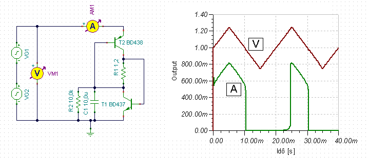 Próbáltam kicsit "igényesebb" kapcsolást készíteni, ahol a kisütő áram közel állandó, és a lekapcsolás pontos és jelzés is van róla. Hát ez lett belőle. - Persze bármely jó és vacakaksihoz megfelelő. Ha mérnénk az eltelt időt, akkor kapacitást is lehetne vele számolni. (pld. Perverz ötletként: egy mechanikus kvarcóra tápját rákötni a Led-re, az addig járna, míg a Led ég. Ha a Led piros, az óra tápja akkor 1,5V) proli007