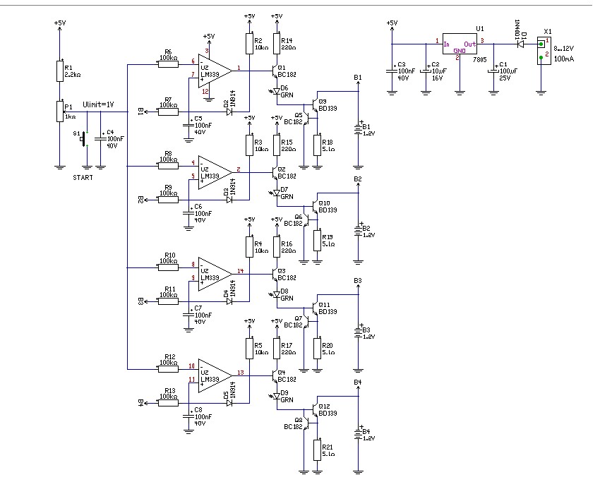 Kisütő áram: 0,65V/R18 (R19,R20,R21) ~120mA Indítás: Start gomb Jelzés: kisütés alatt, Led Táplálás: dugasztáp 9Vdc (A nyák egyoldalas. A piros vezetők, csak vezetékel. ) üdv! proli007