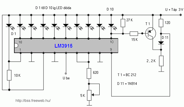 VU-mérőbe logaritmikus kijelzésű a szokásos. Ajánlom, hogy töltsd le az adatlapját az IC-nek és abból sokat megtudsz. www.datasheetarchive.com
