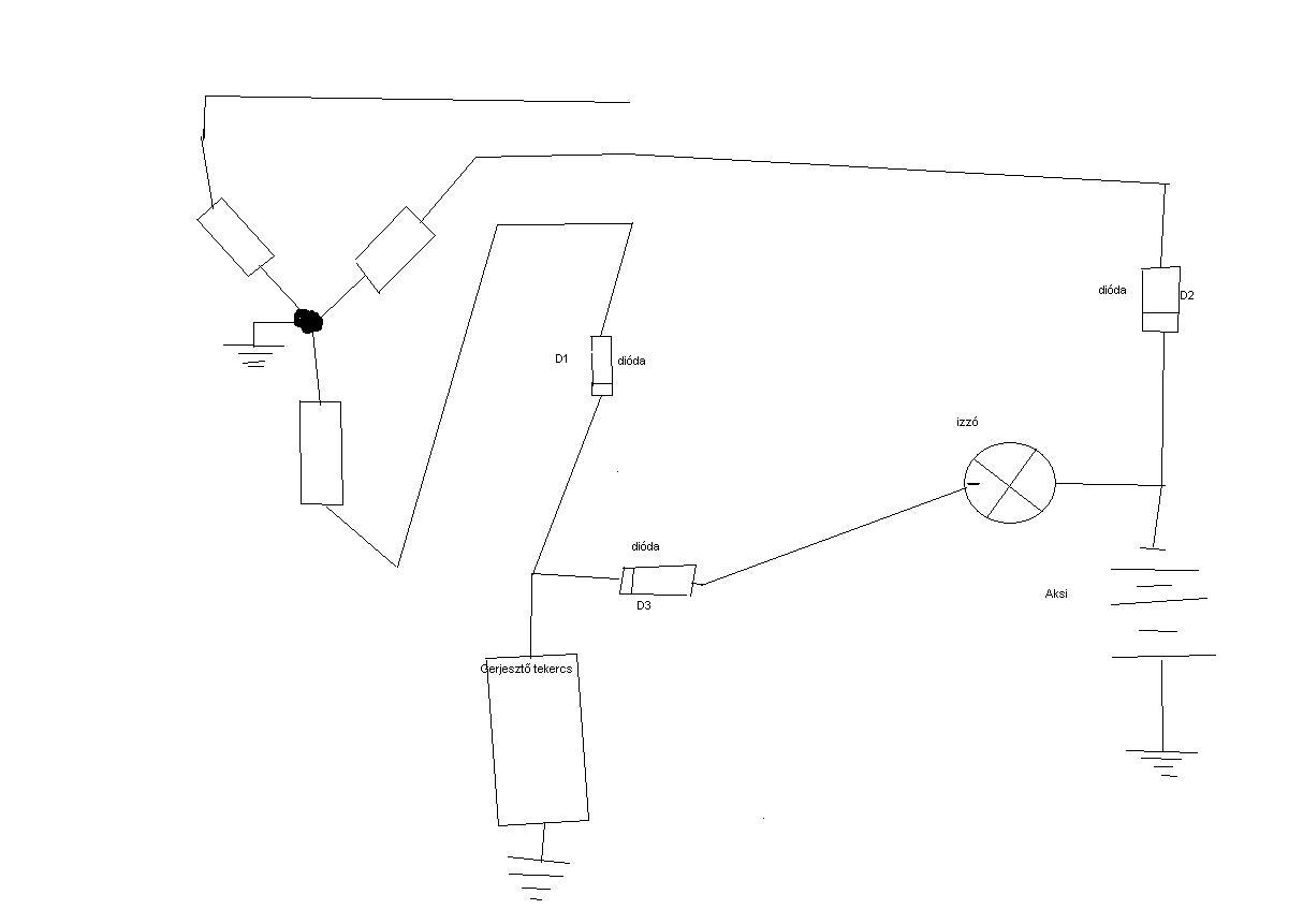 A B+ pontra menő kábel az közvetlenül az akkura van kötve. Ha elégett, akkor ott jelentős áram folyt, szinte biztos, hogy a generátorban zárlat keletkezett, és az akku elégette a vezetéket. Ha a vezeték vége biztosan nem ért testhez, akkor ott a diódák átmentek zárlatba, mert más úton akkora áram nem tudott folyni. Esetleg még a generátor állórésze is leéghetett, akkor már olcsóbb lesz újat venni. A három vékonyabb vezeték simán lehetnek a gerjesztés vezetékei, de jobb lenne, ha megnéznéd, hogy milyen jelzésű pontokra csatlakoznak. Ha a generátor külső gerjesztésű, akkor ott lennie kell szabályzónak valahol, és oda megy több vezeték a generátortól. F Astra-ban már nem elektronikus adagoló van? Mert akkor szerintem nem a generátortól veszi a fordulatszámjelet a műszerhez, hanem a motorvezérléstől. Idézet: „NINCS VALAKINEK KAPCSOLÁSI RAJZA???” NÉHÁNY RAJZ MÁR FELKERÜLT IDE, SZINTE MINDEN GENERÁTOR AZONOS FELÉPÍTÉSŰ, CSAK A JELZÉSEK TÉRNEK EL NÉHA!!!