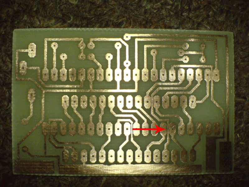 Vagy egy gyorsabb megoldás : csinálsz még egy fóliát amin nincs forrszem (csak a vonalak) evvel ujból levilágítod ujból előhívod és kész.