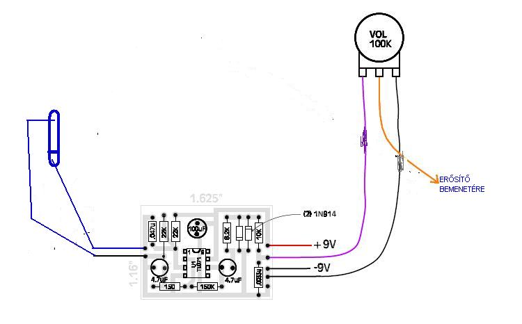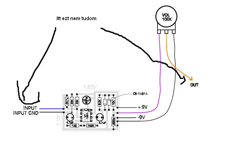 De térjünk a Te pedálodra; szóval ami nekem kicsit furcsa, hogy a csávó +9V -ot, illetve "-9V Gnd"-t tüntett fel a rajzon. / A -9V az csak elírás, mivel a gnd=test vagy föld ami 0V. / (És szinte mindig fekete vezetékkel jelölik)