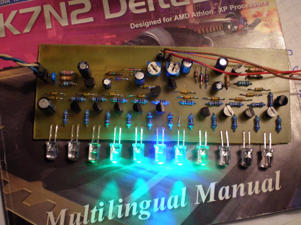 Átalakítottam az kapcsolások között levő óriás kivezérlésjelzőt. Sztereó 5-5 leddel. Korekt kapcsolásnak tünt és az is. Kiválóan müködik