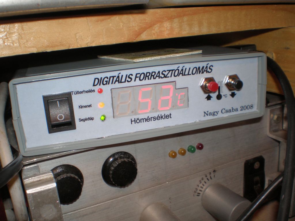 Végre elkészültem a digitális kapcsólóüzemű forrasztóállomásommal. Kicsit ágyúval verébre kategória. Elsődleges szempont a hordozhatóság volt. Az egésznek a szive egy Atmega8, a beállított hőmérsékletet EEpromba eltárolja. A processzor vezérli a kapcsolóüzemü táp kitöltését, aminek a kimenetén a páka csücsül. Kicsit még kelett volna csiszólni a programot, de most erre futotta. Képek: