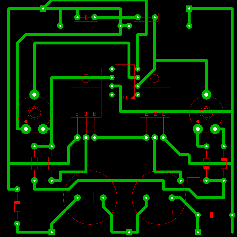 Tulajdonképpen nem sok hiba volt a kapcsolásodban. :no: De egy kicsit át kellet szabni a nyomvonalat. :wow1: S egy két alkatrészt meg kellet fordítani. :dumcsi: Sokat segit ha sokszor, alaposan összeveted az elvi :nezze: rajzot és a készülődő áramkört. Valamint érdemes a szükséges adatlapokat is beszerezni. Tudom, h. a Spirit Lay nem kényeztet el az alkatrészek bőségével, Viszont jelőld, ha nem szabványos kimenetet használsz. Ez később is sokat segíthet egy egy hibakeresésnél. Mellékelem a két rajzot. A SCH-ema (alvi rajz) -ban csak a 741-es lábai lettek feltüntetve. A nyáktervben a lehető leg kevesebbet változtattam meg. De még mindíg lehetne a nyomvonalon egyszerűsíteni. ( 6. 7. láb és a 100K-s poti környékén ) De ezt már rád bízom! Ellenőrizd le te is a kapcsolást, valamint a tranyók pozícioit! A kritikus dolgokat kékkel javítottam! Sárgák az átkötéseket jelölik. A többit +látod... Ja a nyák nem mérethelyes! Inkább csak a változtatás referenciájaként használd! Sor sikert! _jani_