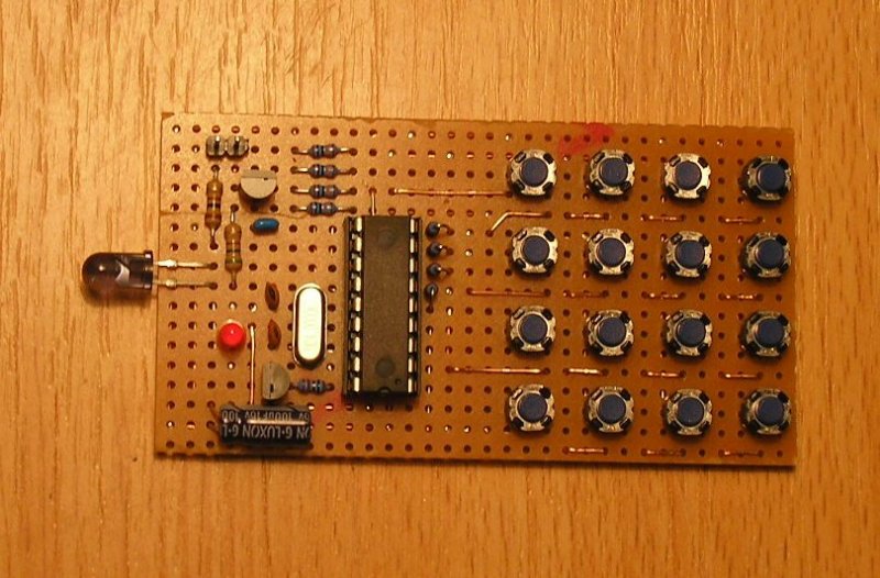 Volna még egy kérdésem. Beégettem az egyik PIC16F628-ba a távirányító hex állományát az icprog-gal. Egy dolgot lehet hogy elnéztem, mert nem jól müködik. Az icprog-ban az oscit mire kellene állítani? Én XT-re állítottam... A kész távirányitó képét mellékelem.
