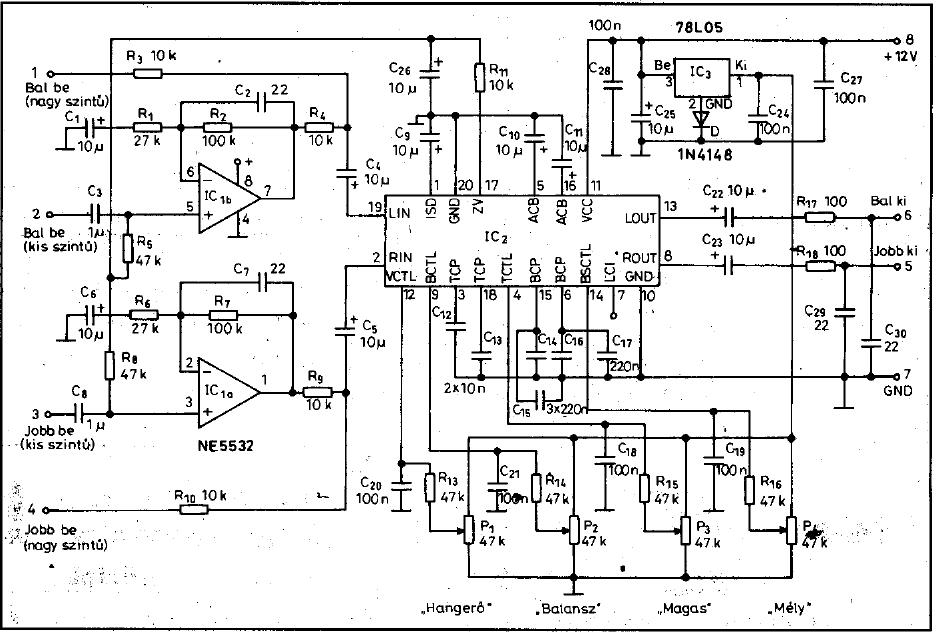 Fórum » LM1036 sztereo hangszínszabályzó áramkör