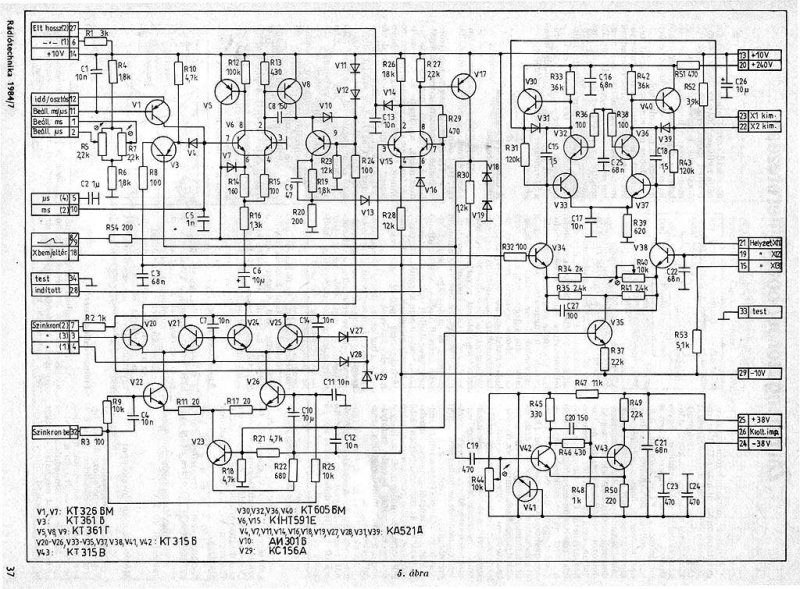Már nálam van ez a szkóp. Már van eltérítés, de közel sem működik megfelelően. Alacsonyabb frekivel nem térít ki teljesen, magasnál nem hagyja magát indítani, szabadonfutó lesz. Szinkron sincs. A freki szabályzó szabályozza az amplitúdót is (vagy fordítva, nem tudom eldönteni azt sem, hogy eredetileg mit kéne szabályozzon, de a kettőt egyszerre biztos nem.), és egyéb működési anomáliák is vannak. Jani a tunneldiódára gyanakodott, nekem is gyanús az áramköri elem. Mivel lehetne pótolni? Sajnos itt "minden összefügg mindennel" típusú áramkörrel találtuk magunkat szembe.